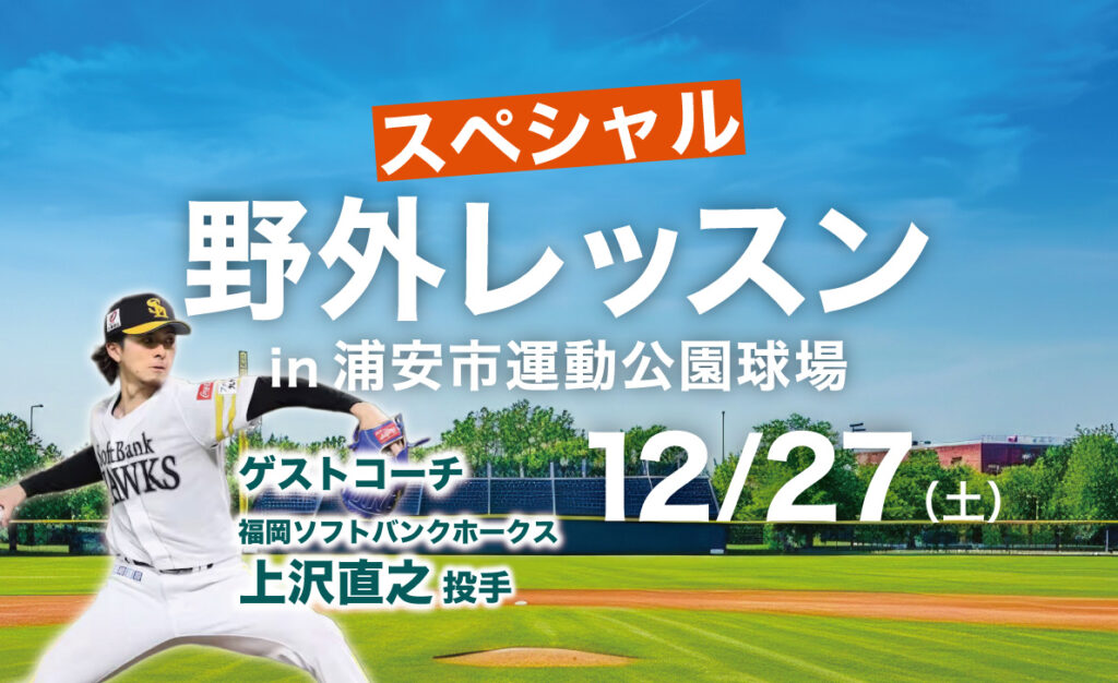 第2回:12月27日(土) 開催 第2回:12月27日(土) 開催 ソフトバンク上沢直之投手スペシャル野外レッスン in 浦安 福岡ソフトバンクホークス上沢直之 投手 が浦安にやってきます! トップレベルの投手から直接指導を受けられる今年最後の貴重なスペシャルレ...