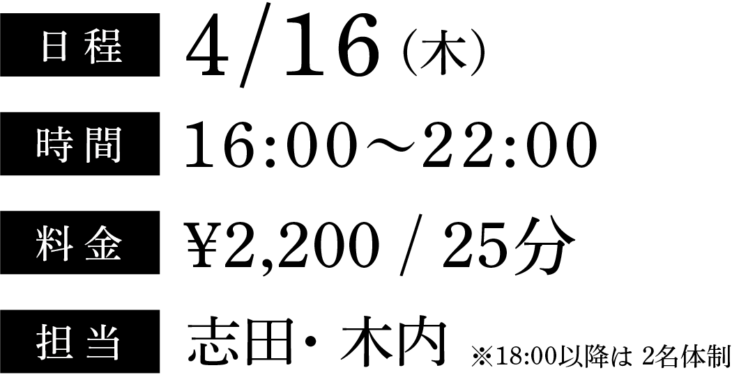 4/16 (木) 16:00-22:00